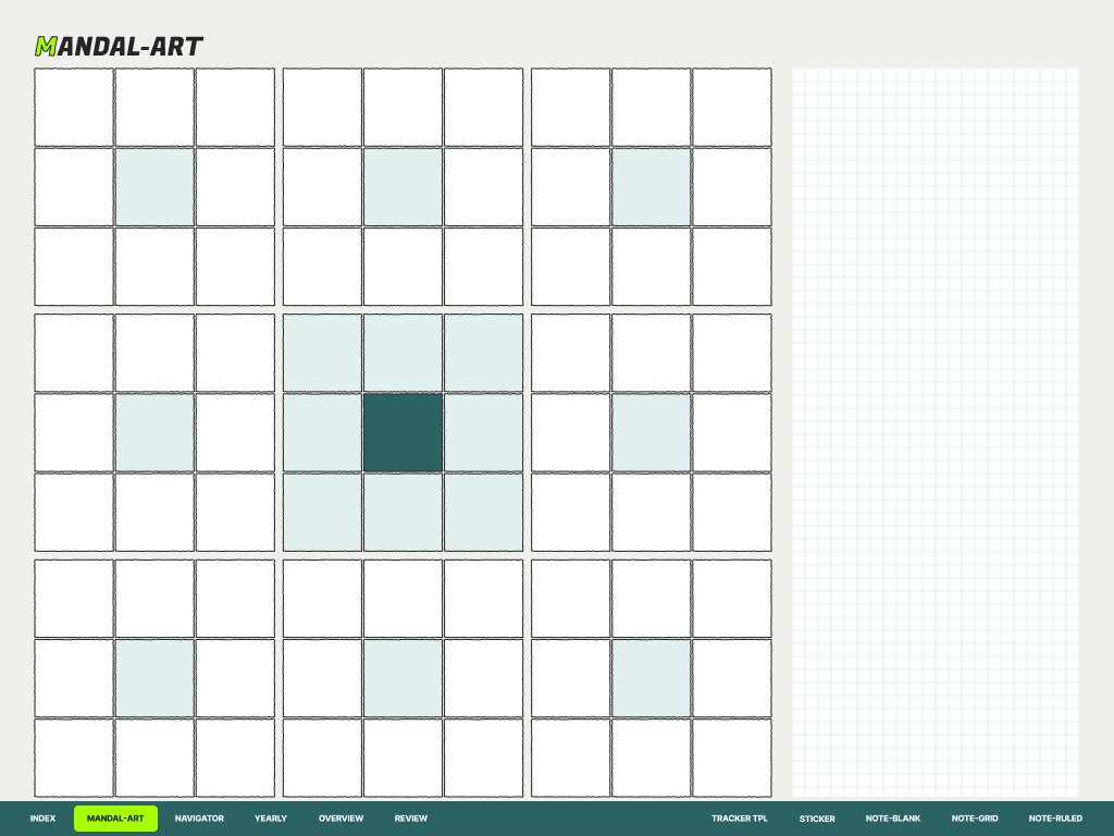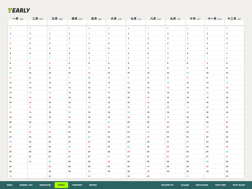 전체 페이지는 501장으로 Yearly, Monthly, Weekly, Daily에 여러 종류의 노트와 트래커, 가계부 용 Weekly까지 다양하게 구성되어 있습니다. 필요하지 않은 페이지는 삭제하시고 사용하시면 됩니다.